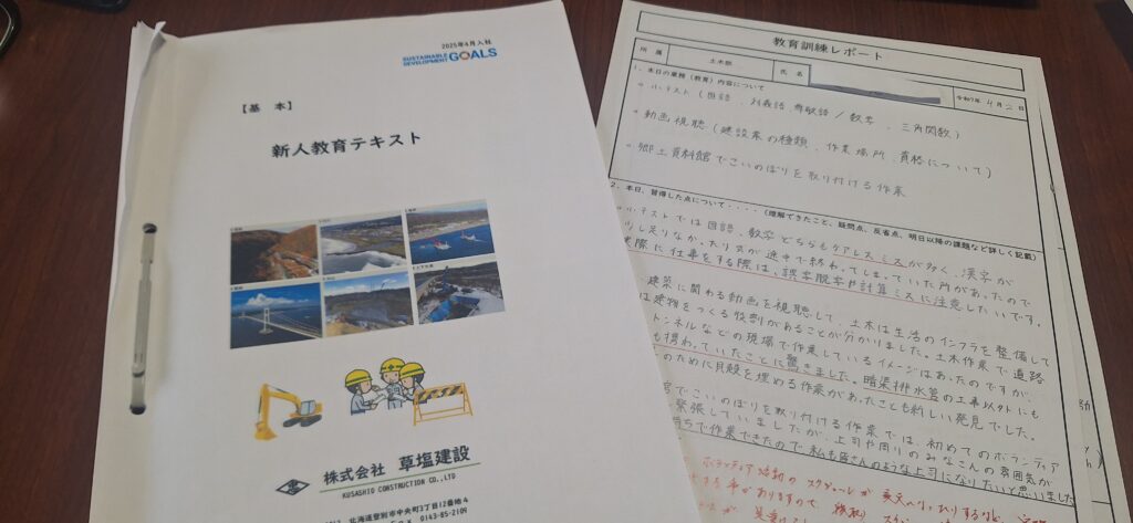 当社は4月1日付で昨年度に続き、新卒者の採用を行い、約2週間に渡る社内教育及び外部教育機関による訓練が始まりました。初日は建設業界についての説明に始まり、社会人としての心構え、マナー教育、そして将来の施工管理技術者を目指すために先輩技術者による最新のICT技術の理解を目標に、体験型のカリキュラムによる訓練を進めて参ります。